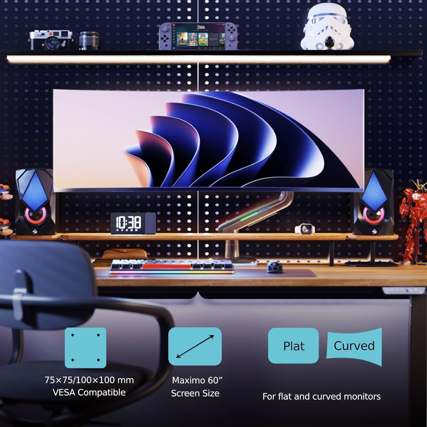 💡 Preparado para pantallas curvas y ultrawide: Especialmente diseñado para gamers que usan monitores panorámicos.